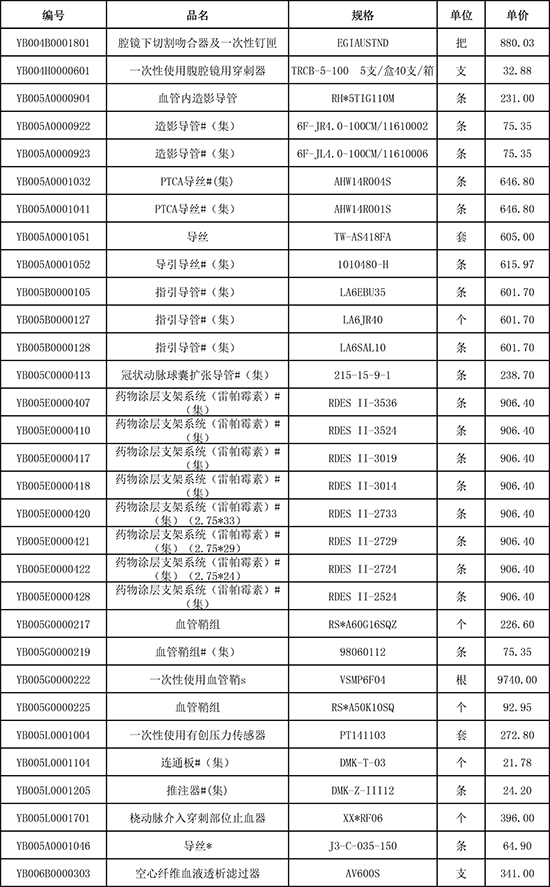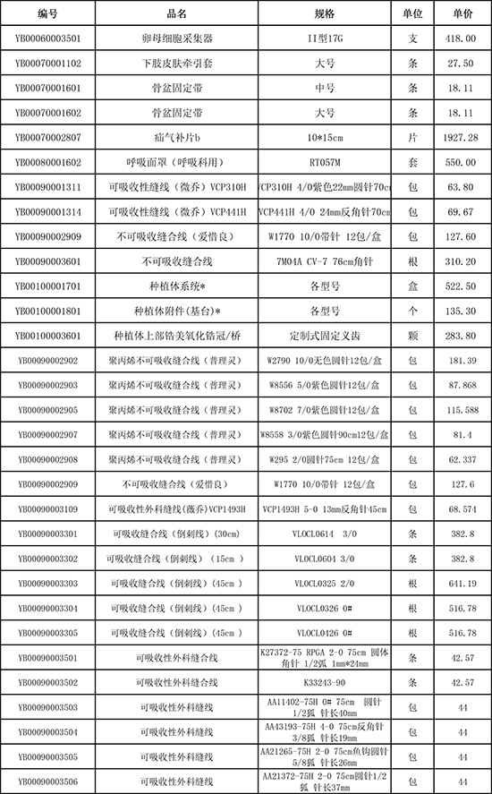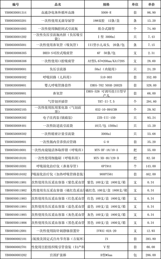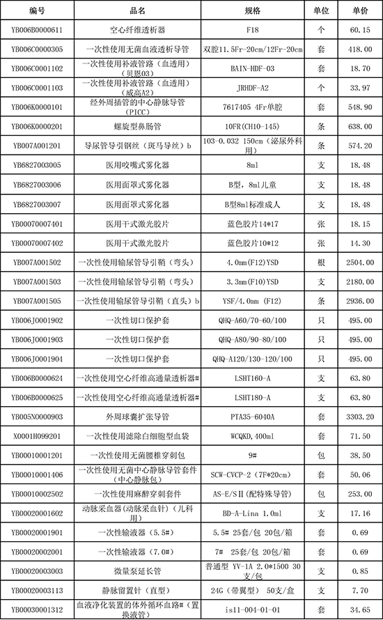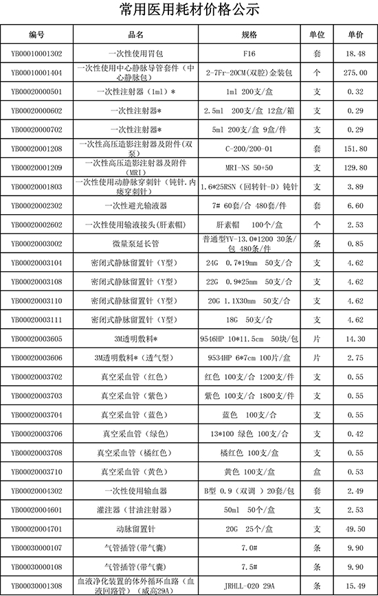 东莞常安医院常用医疗耗材价格公示(20251103)