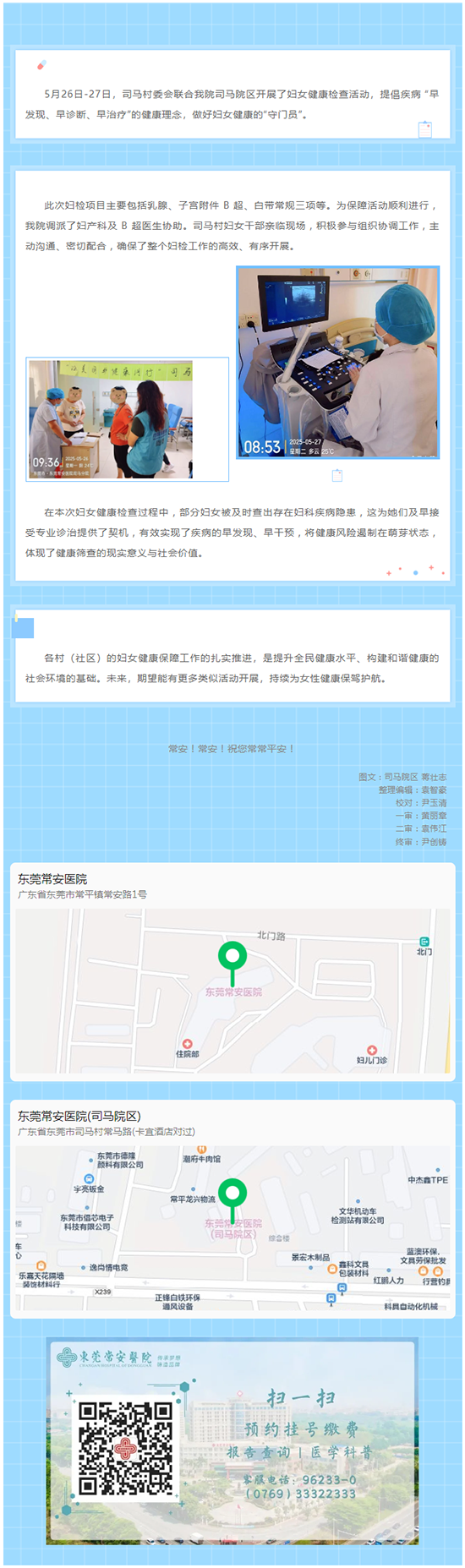 常安动态 | “让美丽与健康同行”--司马院区妇检活动助力妇女健康