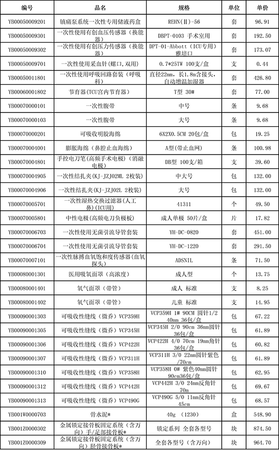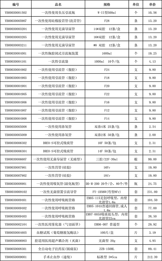 东莞常安医院常用医疗耗材价格公示(20251103)