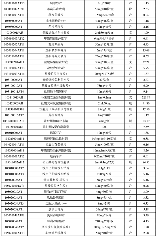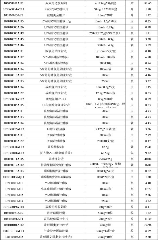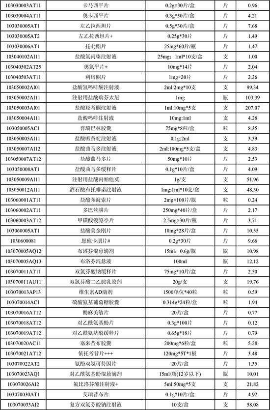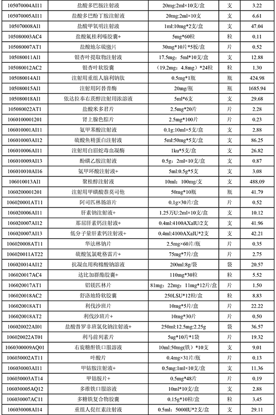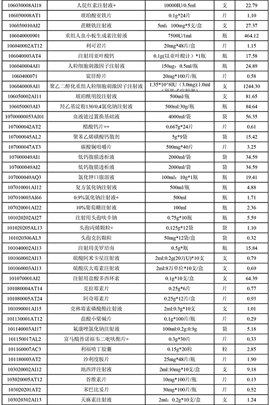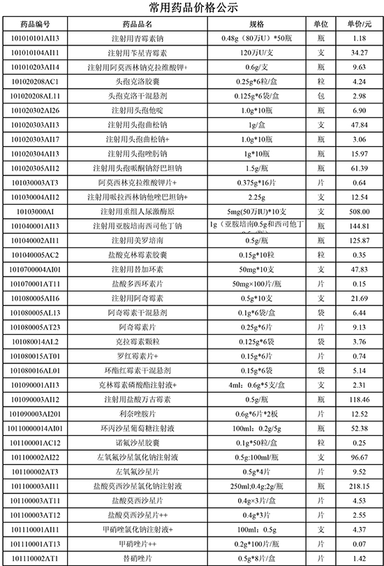 东莞常安医院常用药品价格公示(20251103)