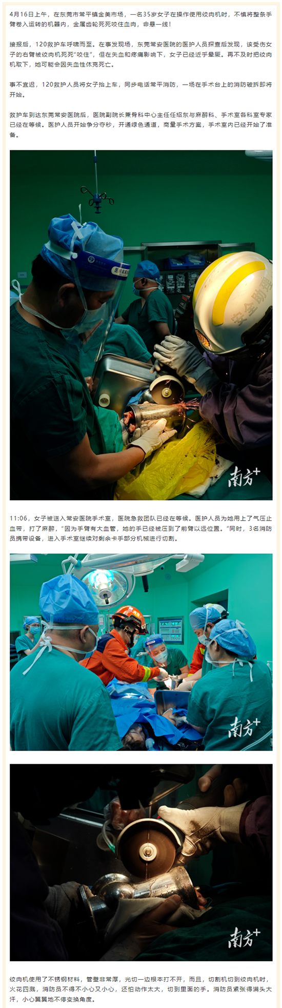 绞肉机“咬” 住常平一女子手臂!手术室内,他们携手极限救援